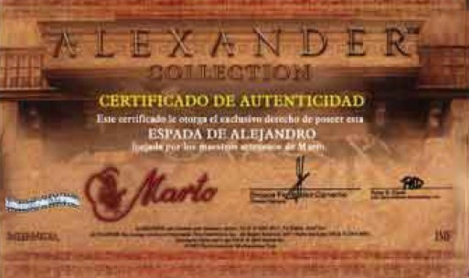La espada de paseo de Alejandro El Grande viene con su correspondiente vaina oficial y su certificado de autenticidad. Las tácticas militares utilizadas por Alejandro Magno (356-323 a. C.) demuestran que ha sido uno de los más grandes generales de la historia. La táctica llamada del «martillo y el yunque», o también táctica de cerco con unidades de choque, era una formación de combate innovadora para la época: dispuso sus unidades en niveles; fingió querer rodear al enemigo para poder dividirlo mejor y así abrió una brecha en sus líneas defensivas.