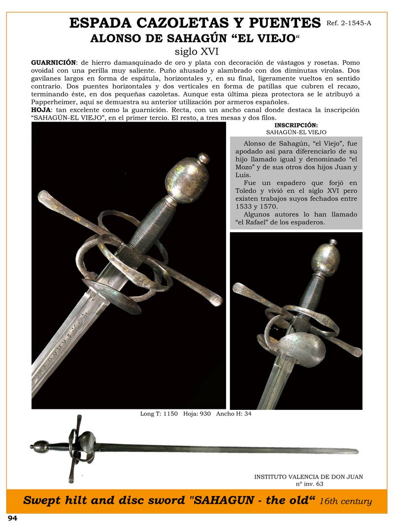 ESPADA CAZOLETAS Y PUENTES Ref. 2-1545-A ALONSO DE SAHAGÚN “EL VIEJO“ siglo XVI. Autor: Vicente Toledo Momparler (espadólogo)